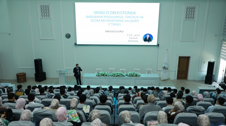 Dastlabki dars Islom iqtisodiyoti va xalqaro munosabatlar fakulteti dekani Farhod Karimov hamda “Xalqaro munosabatlar” kafedrasi mudiri Bektosh Berdiyev tomonidan “Global minbarda O‘zbekiston” mavzusida o‘tkazildi.