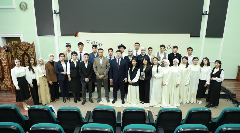 Tadbirda O‘zbekiston Respublikasi Prezidentining vakillik organlari, nodavlat notijorat tashkilotlar, din va yoshlar masalalari bo‘yicha maslahatchisi o‘rinbosari, O‘zbekiston xalqaro islomshunoslik akademiyasi rektori Muzaffar Kamilovning tabrigini Akademiya prorektori Irgash Daminov o‘qib eshittirdi.