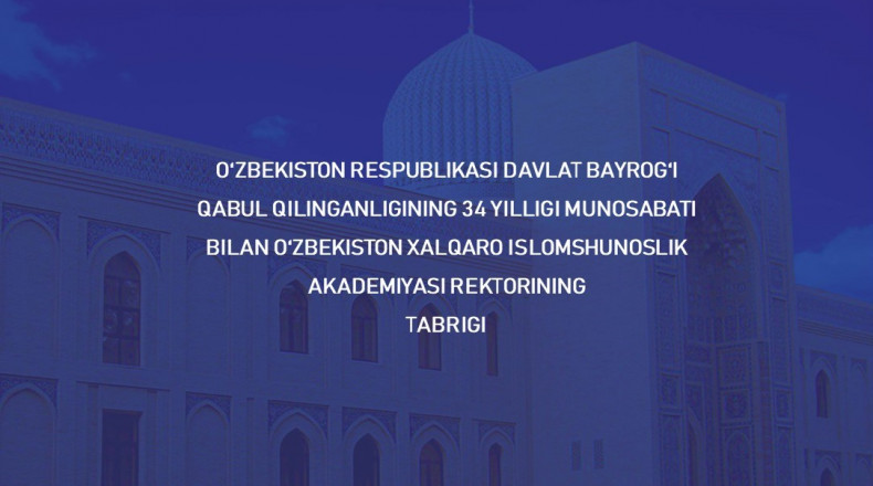 O‘zbekiston Respublikasi Davlat bayrog‘i qabul qilinganligining 34 yilligi munosabati bilan O‘zbekiston xalqaro islomshunoslik akademiyasi rektorining TABRIGI