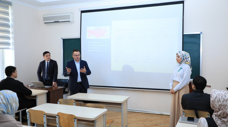Mazkur dars Al-Farobiy nomidagi Qozoq milliy universiteti dotsenti Ruslan Sarsembayev hamda “Dinshunoslik va jahon dinlarini qiyosiy o‘rganish UNESCO” kafedrasi dotsenti Mohira Abdullayeva va kafedra o‘qituvchisi Saidumarxon Burgutxonov tomonidan o‘tkazildi.