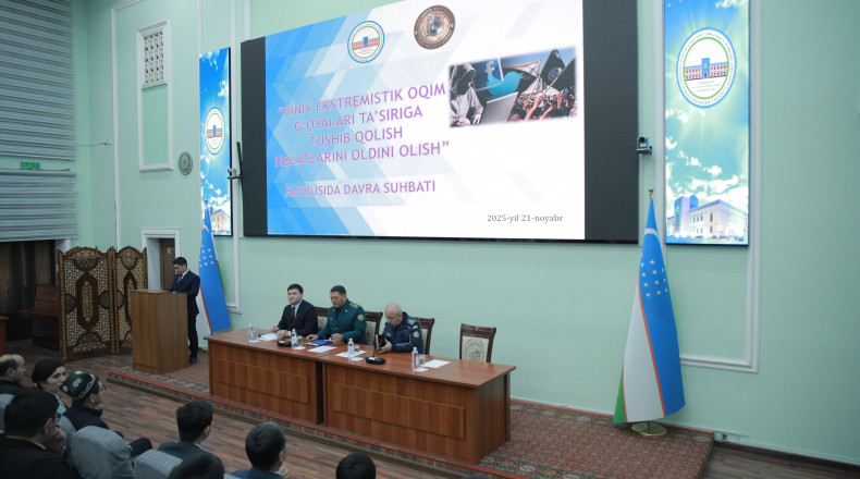 Shu maqsadda bugun O‘zbekiston xalqaro islomshunoslik akademiyasida “Diniy ekstremistik oqim g‘oyalari ta’siriga tushib qolish holatlarining oldini olish” mavzusida davra suhbati bo‘lib o‘tdi.