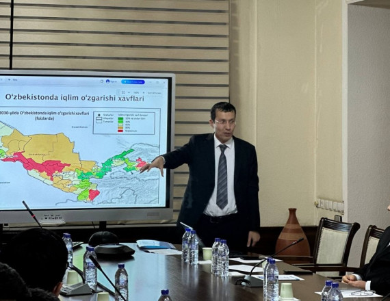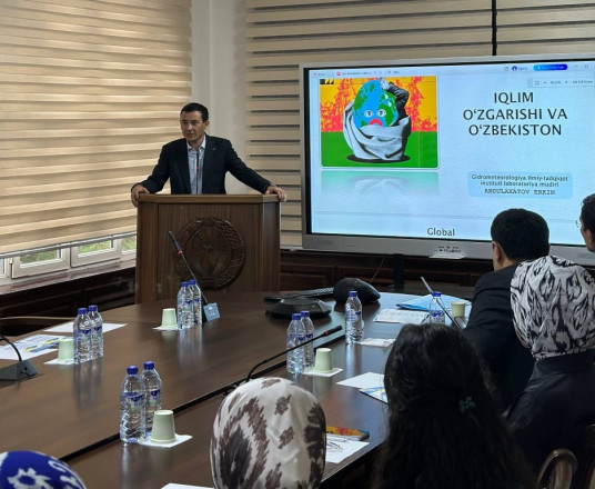 Seminarning asosiy ma’ruzachisi — Gidrometeorologiya ilmiy tadqiqot instituti “Amaliy iqlimshunoslik” laboratoriyasi mudiri, geografiya fanlari bo‘yicha PhD Erkin Abdulaxatov bo‘ldi.