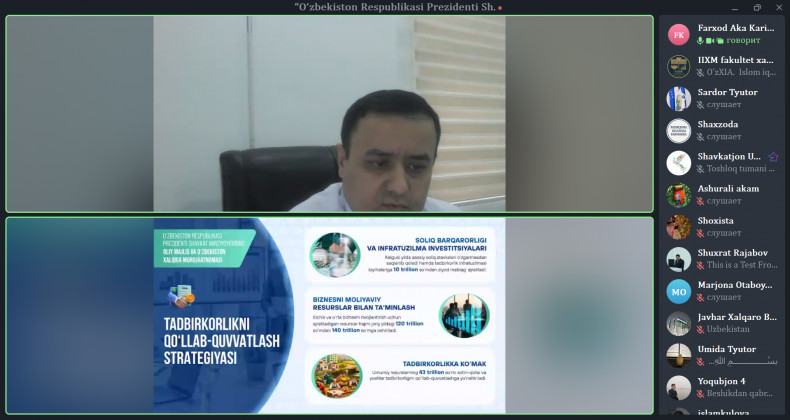 Xususan, bugun O‘zbekiston xalqaro islomshunoslik akademiyasida Islom iqtisodiyoti va xalqaro munosabatlar fakulteti dekani Farhod Karimov tomonidan onlayn davra suhbati o‘tkazildi.