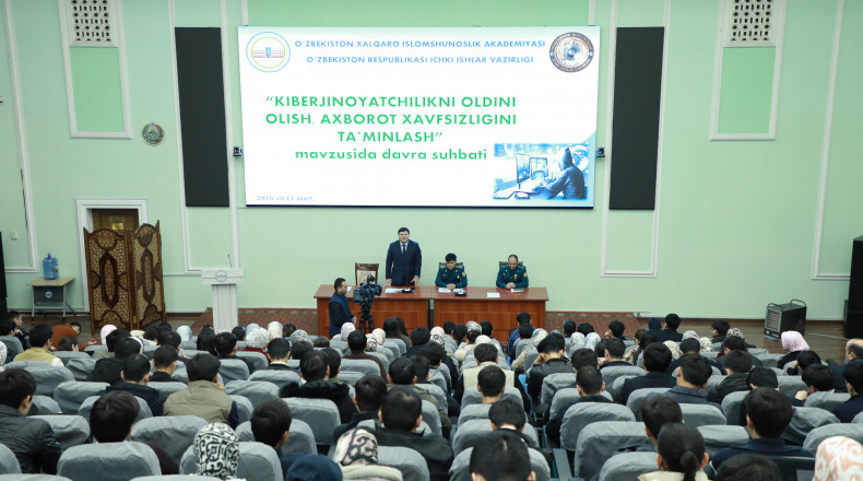 Bugun O‘zbekiston xalqaro islomshunoslik akademiyasida yoshlarga kiberjinoyatlarga qarshi kurashishda tushunchalar berish, axborot texnologiyalari sohasidagi jinoyatlardan ogoh etish maqsadida “Kiberjinoyatchilikning oldini olish, axborot xavfsizligini ta’minlash” mavzusida davra suhbati o‘tkazildi.