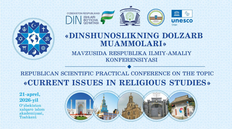 В целях обсуждения вопросов, связанных с дальнейшим совершенствованием преподавания дисциплины «Религиоведение» в Республике и повышением эффективности образовательного процесса, 21 апреля 2026 года в Международной академии исламоведения Узбекистана состоится традиционная республиканская научно-практическая конференция на тему «Актуальные проблемы религиоведения».