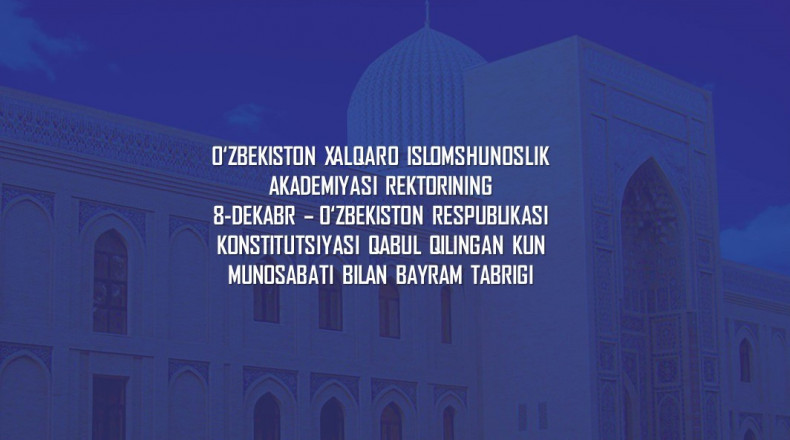 Oʻzbekiston xalqaro islomshunoslik akademiyasi rektorining 8-dekabr – Oʻzbekiston Respublikasi Konstitutsiyasi qabul qilingan kun munosabati bilan BAYRAM TABRIGI
