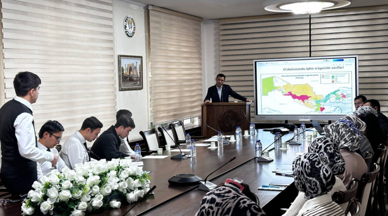 Seminarning asosiy ma’ruzachisi — Gidrometeorologiya ilmiy tadqiqot instituti “Amaliy iqlimshunoslik” laboratoriyasi mudiri, geografiya fanlari bo‘yicha PhD Erkin Abdulaxatov bo‘ldi.
