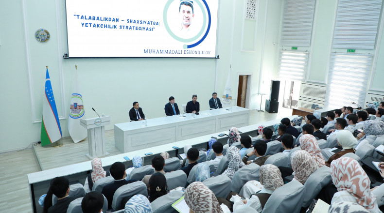 “Talabalikdan – shaxsiyatga: yetakchilik strategiyasi” mavzusidagi uchrashuvda Yoshlar masalalari va ma’naviy-ma’rifiy ishlar bo‘yicha birinchi prorektori Habibullo Sadibaqosev, O‘quv ishlari bo‘yicha prorektor Zokirjon Ro‘ziyev, Islom iqtisodiyoti va xalqaro munosabatlar fakulteti dekani Farhod Karimov, tyutorlar hamda talabalar ishtirok etishdi.